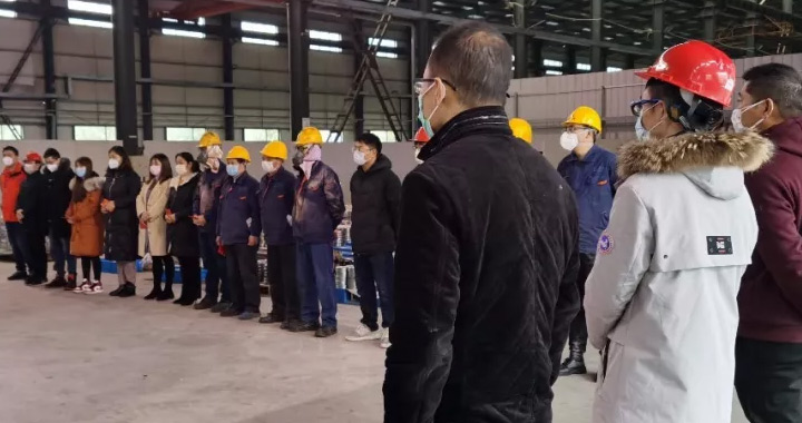 復(fù)工第一天,工廠全體員工參與動員大會,明確安全措施,強化工作規(guī)范,強調(diào)疫情預(yù)防注意事項。