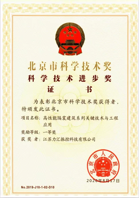 江蘇力匯振控科技有限公司榮獲北京市科學(xué)技術(shù)進(jìn)步一等獎