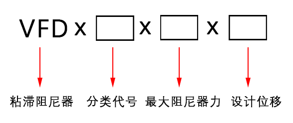 例如,線性粘滯阻尼器最大阻尼力400KN,設(shè)計位移50mm,則可以標(biāo)記為VFD-L*400*50